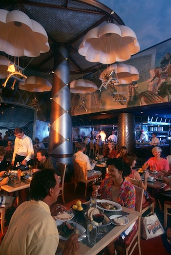 Flying Fish Cafe. Here at Disney’s Boardwalk is another on-stage kitchen with a gold-tiled countertop for those that would like to dine right in front of the oak-fired grill where Chef Tim Keating and his team turn out nightly specials. And you’ll also find one of Disney’s best wine lists with more than 50 selections by the glass with suggested pairings.